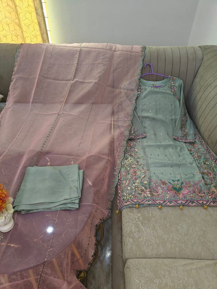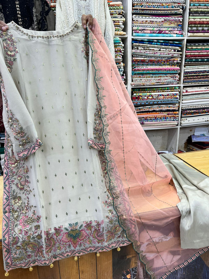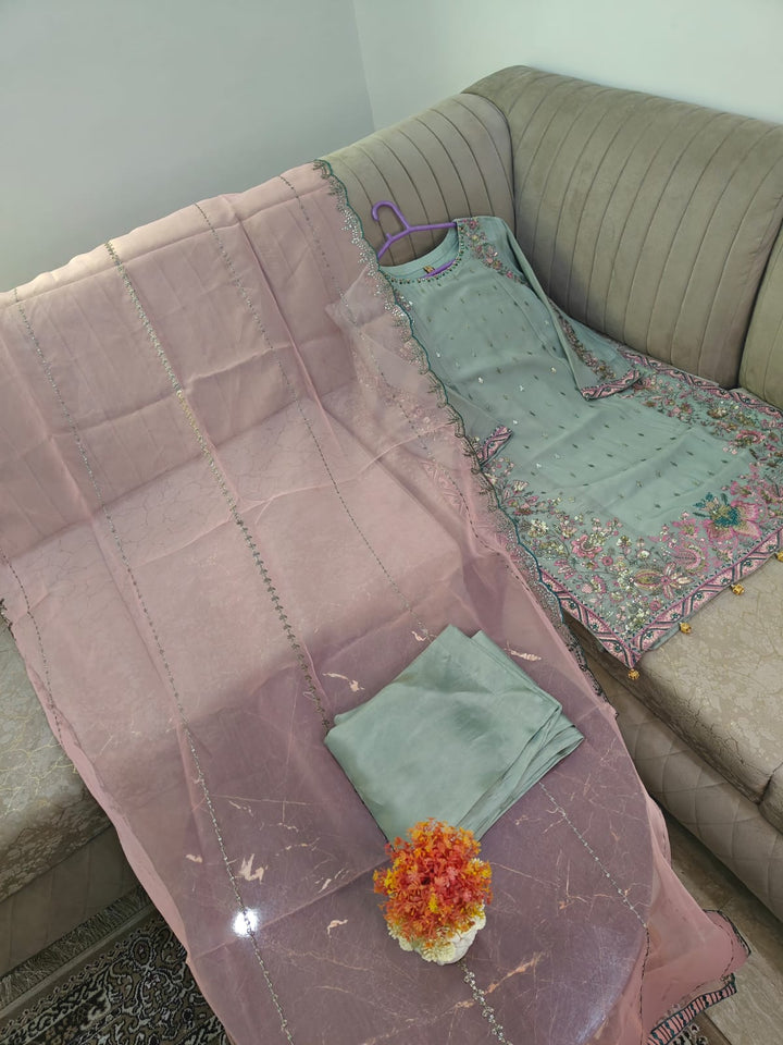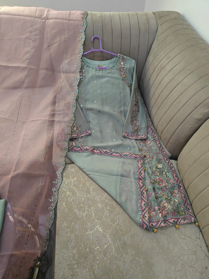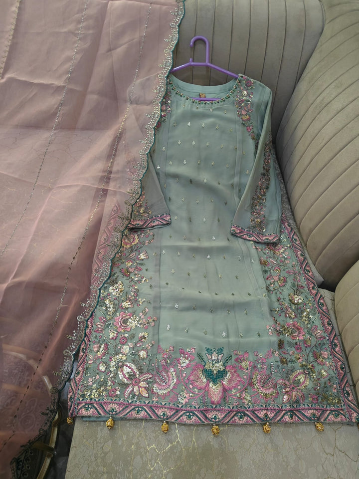 Rs5,550/- only chiffon fabric shirt with organza fabric embroidered dupata with trouser sizes small med large Xl available…
